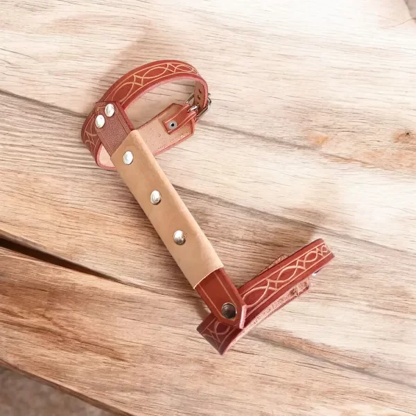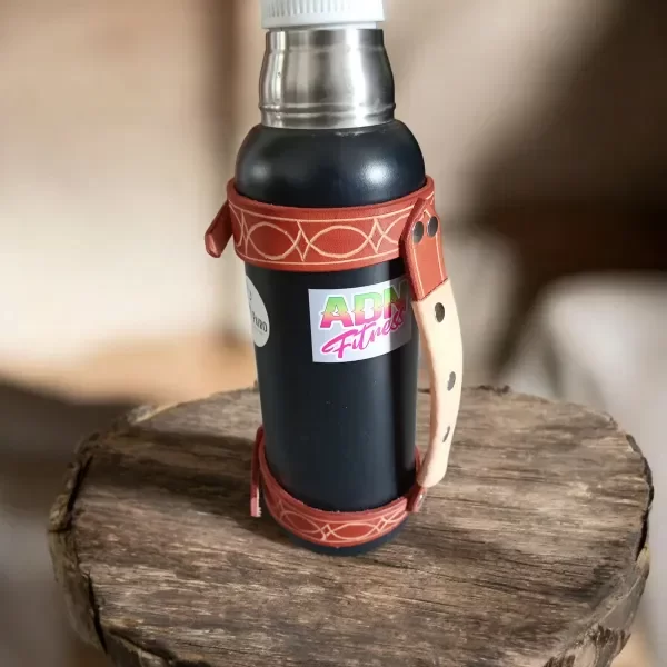 Es un diseño pensado para sujetar el termo mediante unas hebillas reforzadas en sus extremos, otorgándole una fuerte resistencia gracias a la buena calidad y durabilidad que en este caso nos brinda el cuero .