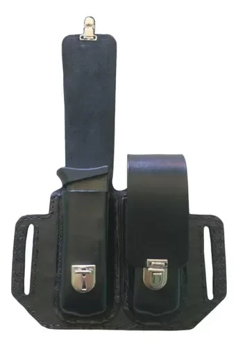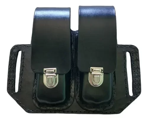 Porta cargador doble y funda para pistola 9 mm Bersa mini thunder en diseño en color negro