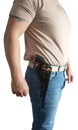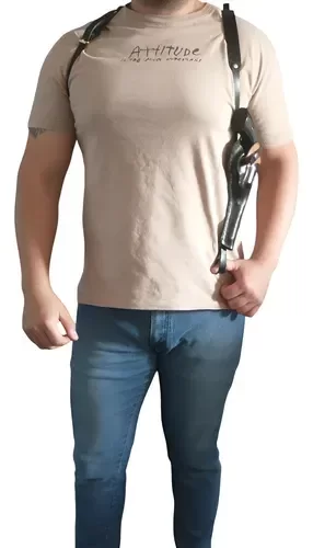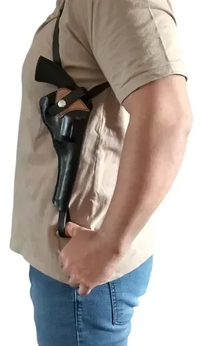 Sobaquera y Funda de cuero , se utiliza tanto como sobaquera y sino en la posición para la cintura.